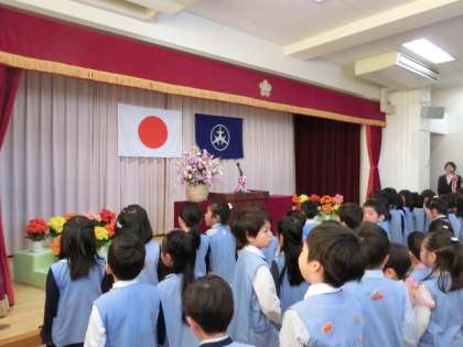 一足先に、八幡山幼稚園では修了式が行われました。53名の年長さんたちが、園長先生から証書を受け取り、立派に「お別れのことば」を述べていました。ご卒園おめでとうございます。4月から小学校で待っていますよ。