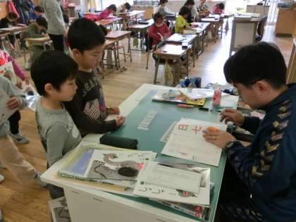 今日で午後の授業も、今年度は最後となります。1年生の教室では、それぞれの課題をしっかりこなしていました。2組では1年生の漢字の復習です。先生にしっかり直してもらい、繰り返し練習していました。3組では、生活科で昔遊びで楽しみました。いろいろな先生に、上手になったところを見てもらい、褒めてもらいました。