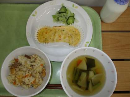 10日ぶりに子どもたちの元気な声を聞くことができました。餅米を加えたおこわは、国産の山菜と、油揚げ、鶏肉などを使い、旨味たっぷりに仕上がりました。