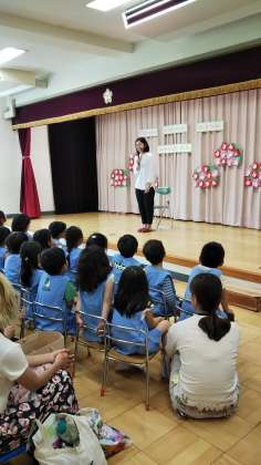 八幡山幼稚園では、離任式を行いました。お世話になった先生とお別れの会をしました。久しぶりに会った先生から、いろんなお話を聞いて楽しく過ごしました。