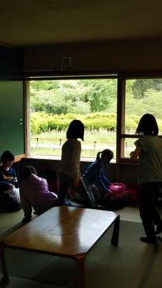 いよいよ、川場村の世田谷区の施設「ふじやまビレッジ」で過ごします。宿舎に入ると避難訓練を行いました。その後は、早速グループで遊び始めました。どの部屋も賑やかです。