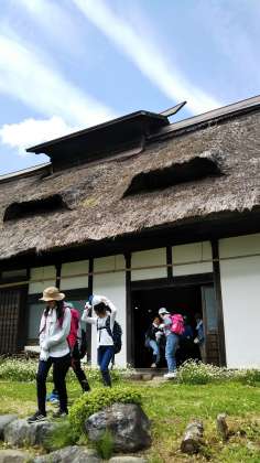 古民家を見学しました。茅葺き屋根の立派な建物でした。中には囲炉裏があり、煤で燻されることが、茅葺き屋根にはとても必要なことだと教えてもらいました。
