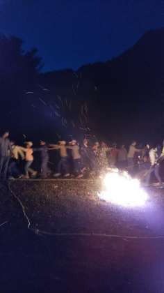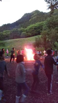 キャンプファイヤーは、校長先生から、各クラスの願いの「絆、友情、助け合いの火」を授けてもらいスタートしました。ダンスやクイズ、じゃんけん列車や歌で楽しい時間を過ごしました。