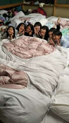 いよいよ今日の活動も終了です。お家の方へのハガキを書いて、布団を敷いて寝ます。明日は、ハイキングです。しっかり寝て頑張りましょう。