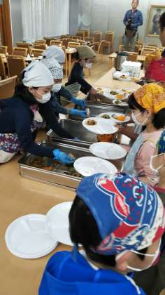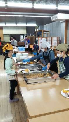 初めての食堂での朝食です。食事係さんが皆の配膳をしました。丁寧に心を込めて配膳してくれました。