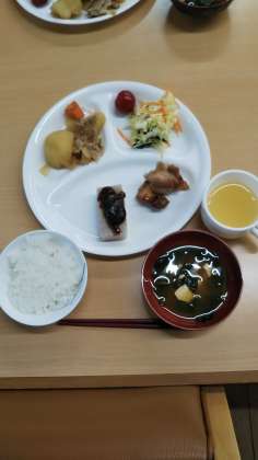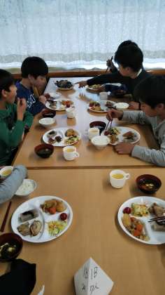 今日は、鉱石山のハイキングで9キロメートルほど歩きました。沢山歩いた分のエネルギーをしっかり補充しましょう。今日は、群馬県の特産のこんにゃくの味噌田楽と炭火焼きの鱒が、出されました。美味しい夕食、ご馳走様でした。