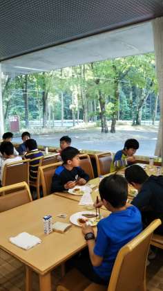 ふじやまビレッジの最後の食事です。食堂からの素敵な景色を見ながら、朝食を頂きました。