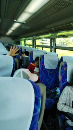 いよいよ川場村ともお別れです。子どもたちの乗ったバスは、田園プラザを予定通り13:00に出発して、沼田インターから高速道路に乗りました。早速、バスレクで楽しんでいます。