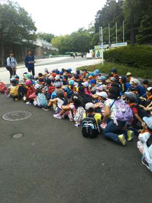 2年生の遠足は、京王線に乗り、高幡不動駅で乗り換えて多摩動物公園駅に到着しました。やっと多摩動物公園に着きました。坂を登りながら、マレーバクやアナグマを見学しました。