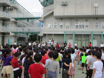 6月3日(月)の児童朝会で集まった金額を全校に報告をしました。