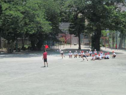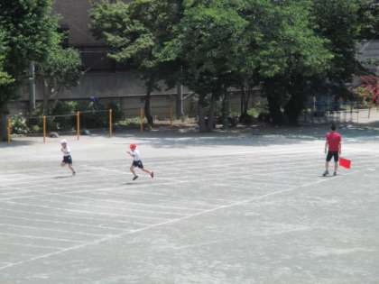 梅雨前の貴重な最後の晴れの日です。熱中症に気を付けながら、4年生が50M走のタイムを計っていました。