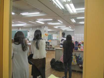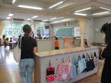 1年生の教室の様子です。朝早くからたくさんの保護者の方が参観してくださいました。