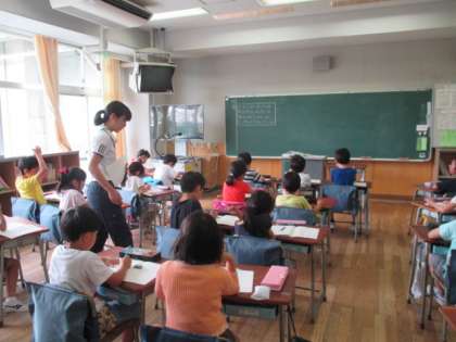2年生の授業の様子です。1組の国語と3組の体育は、体育軽減のため担任が入れ替わって授業をしています。2組は算数の授業でした。1年生から、またぐっと成長しましたね。