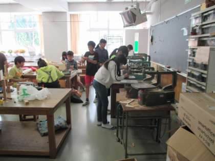 1組は、図工で木工作品の仕上げに入っていました。2組は、理科室で酸素を取り込んで二酸化炭素を吐き出す「呼吸の働きを調べよう」の身体の学習をしていました。3組は、体育でリレーのバトン練習でした。腿上げや前傾姿勢が様になってきました。