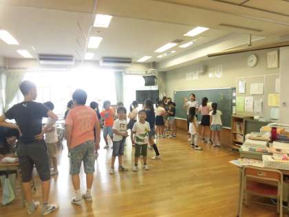 朝の時間は、なかよしタイムでした。各班で、ハンカチ落とし・なんでもバスケット・じゃんけん列車・風船バレーなどをして遊びました。高学年が楽しく進めてくれました。