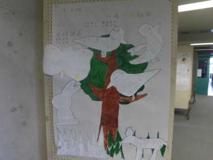 5年生は、川場村のポスターです。移動教室で行った、群馬県の川場村について、わかりやすいポスターができました。