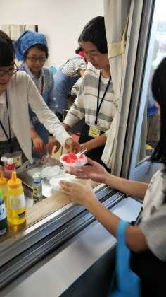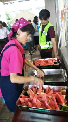 子どもたちは、スイカやかき氷を食べて楽しんでいます。