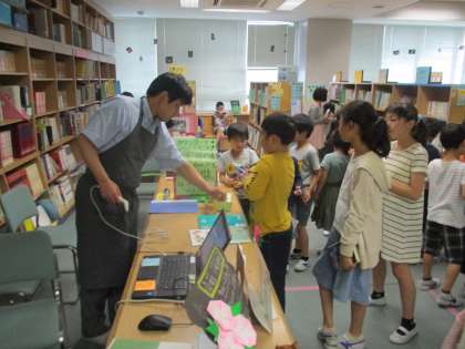 今日は、一日中、雨でしたので中休み、昼休みともに校内で過ごすことになりました。中休みの図書室には、大勢の児童が本を借りに来ました。