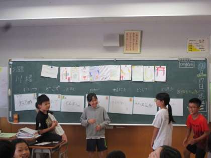 5年2組では、お楽しみ会が開かれました。子供たちが考えた「作文ゲーム」で盛り上がっていました。ゲーム担当の子がしっかりと司会進行をして頑張っていました。