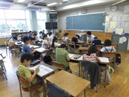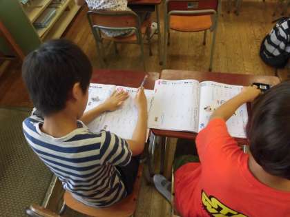 夏休み初日、多くの子が補習に来ました。自分の苦手なところを先生に教えてもらいながら頑張っていました。