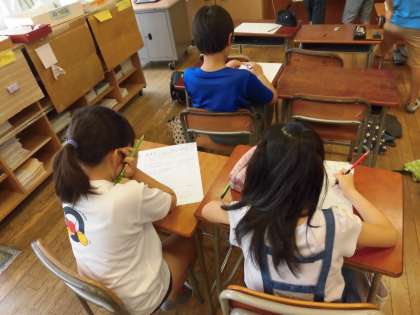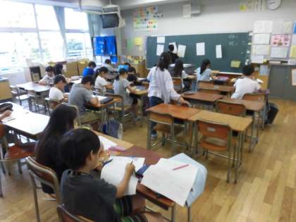 4年生の教室では、補習に来た子たちが、算数や国語のプリントを一生懸命解いていました。全部解き終わったら、自分で採点し、間違えたところを確認していました。おしゃべりをせず、集中して取り組んでいました。