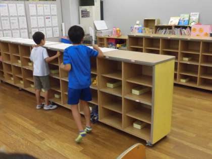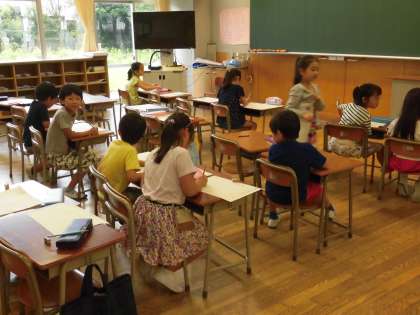 1年生の教室では、多くの子が補習に来て、国語や算数のプリント学習をしました。全部できたら先生のところに持っていき、〇をもらって喜んでいました。