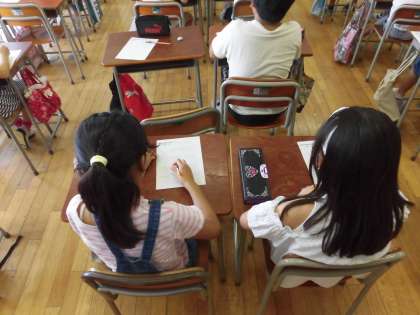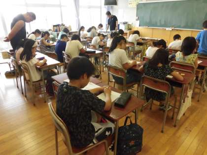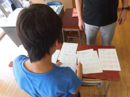 朝早くから、5年生のクラスでは補習に来た子は、黙々と算数プリントを解いていました。プリントが終わった子は、自己採点をして新しいプリントをもらってチャレンジしていました。分からないところは先生に聞くなどして、理解しようとしていました。