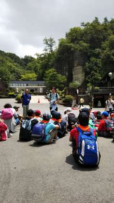 大谷資料館に到着しました。大谷の町には、建物など、いたるところに大谷石が使われていました。外は、暑いので地下の採掘場後の見学が楽しみです。