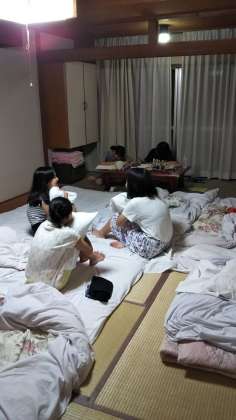 1日目もいよいよ終了です。検温や歯磨きの就寝の準備をしています。明日のハイキングに向けて、ゆっくり休みましょう。