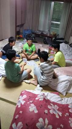 2日目の宿舎の様子です。女子は、肝だめしの話題を、男子はトランプで遊んでいました。残り1日です。最後の宿舎生活を楽しみましょう。