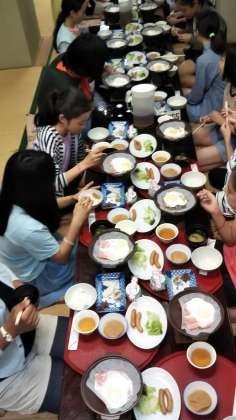 日光での最後の朝食です。旅館の方から、「残菜(食べ残し)が少なく、良く食べてくれています。片付けも上手になりました」と、お誉めの言葉をいただきました。嬉しいですね。