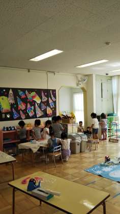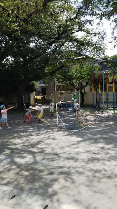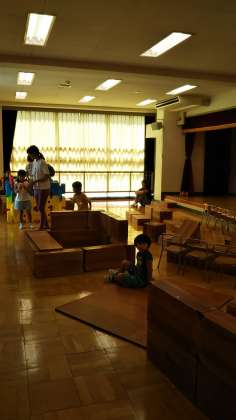 年長組さんは、さすがに遊びもダイナミックです。ホールや園庭で元気に遊んでいました。