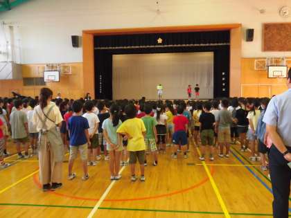 八幡山小学校2学期の始業式が行われました。久しぶりの学校でしたが、子どもたちは元気に登校してきてくれました。1年生と3年生の児童代表の言葉は、2学期の抱負について堂々と発表していて、とても立派でした。また、転入生の紹介もありました。新しい友達を加えて2学期も元気にスタートできました。