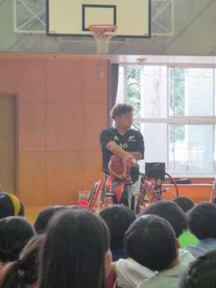 今回のオリパラ教育特別授業のパラキャン体験の選手の皆さんです。車椅子ラグビーの選手の方・ウエイトリフティングなど様々なスポーツにチャレンジしているアスリートの皆さんでした。大変わかりやすく、楽しくご指導いただきました。