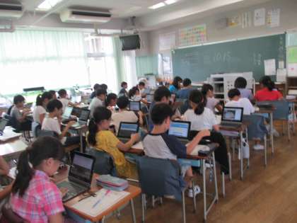 4年生は社会の時間に、タブレットを使った調べ学習をしています。