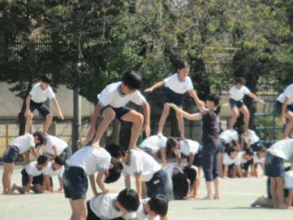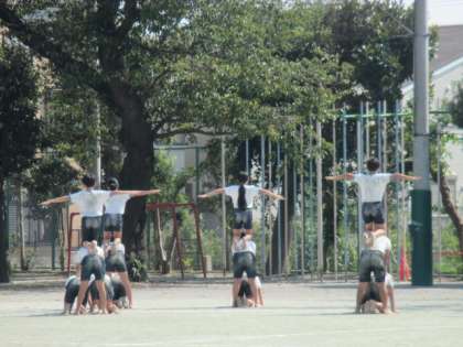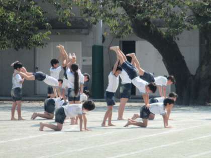 今日の組体操の練習は、5年生のみの学年練習でした。担任の先生も感激するくらい演技が決まっていました。本番が楽しみです。
