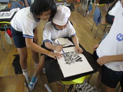 ハッピの背中に自分で選んだ漢字1字を絵の具で書きました。
