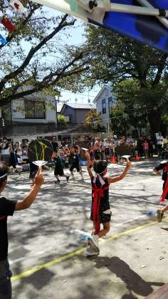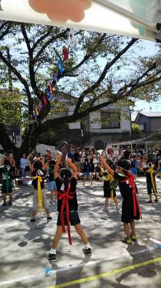 年長さんのリズムは、「これがにほんのおまつりさ」でした。うちわを持ってとてもかっこ良かったです。