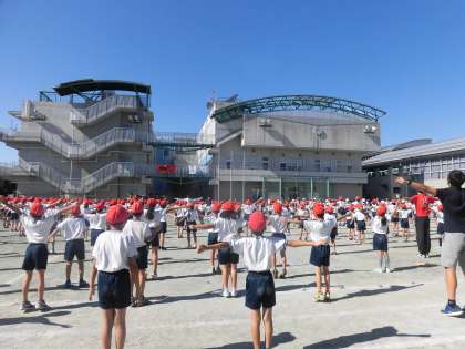 一時間目に最後の全校練習をしました。八幡山音頭の練習では本番のように太鼓や歌に合わせて踊りました、準備運動と整理運動もよく練習して当日を迎えられるように取り組んでいます