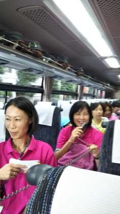 バスの2号車では、スリーヒントクイズや手遊び歌で楽しみました。バスは、青梅街道を進みました。