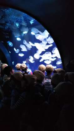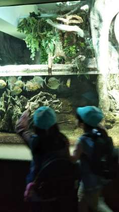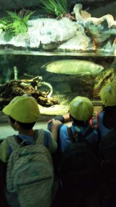いよいよ水槽のお魚たちとご対面です。迫力のある魚やキラキラ光る魚たちに大興奮です。