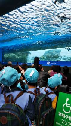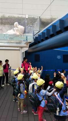 空飛ぶ天空のペンギンやペリカンを見てこれまた、大興奮でした。きく組さんは、ペリカンに見られていました。