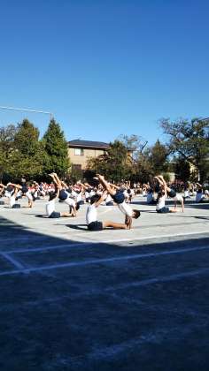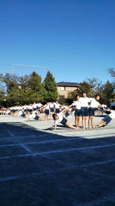 いよいよ5・6年生の組体操「咲ーBlooming〜」の演技です。166人で、校庭に大きな夢の花が咲きました。