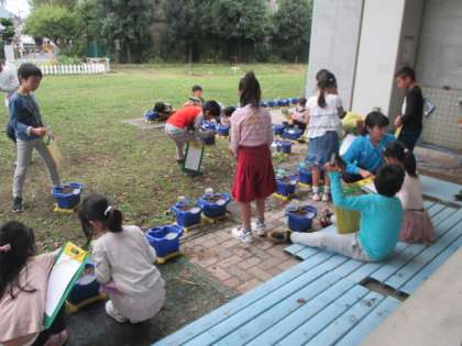 2年生は、生活科園でラディッシュの観察をしました。種を観察してから植えたラディッシュです。ちゃんと芽を出してくれました。収穫が楽しみです。