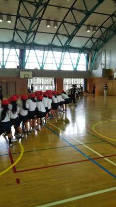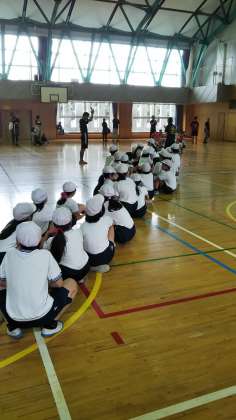 4年生の団体競技は、おたすけつなひきでしたが、体育館のため、全員で綱を引きました。最後は、保護者の方とも、対決しました。4年生頑張りました。