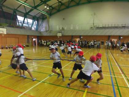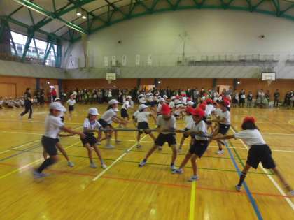 みんなで力をあわせて陣地へ引っ張っています。