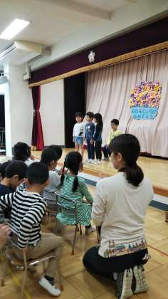 八幡山幼稚園では、10月のお誕生会が行われました。今日は、年長のお友達で行いました。大きな声で、「おめでとう!」とお友達をお祝いしていました。
