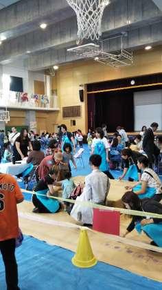 体育館いっぱいにブースがあり、子どもたちは、手芸や工作、お絵描きなど思い思いに楽しんでいました。