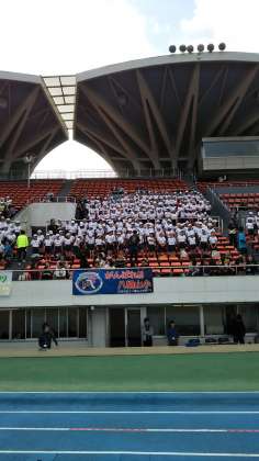 世田谷区の15校の1500人の子どもたちが集まりました。いよいよ第54回連合運動会の開会式です。