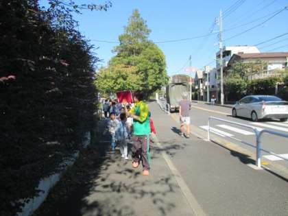 地震の後、火災が発生したという想定で、第2避難場所の将軍池公園に避難する訓練を行いました。